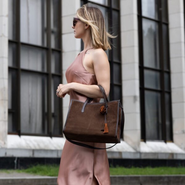 Стильна та містка замшева сумка шопер Rect стане ідеальним доповненням вашого образу, поєднуючи елегантність і практичність.